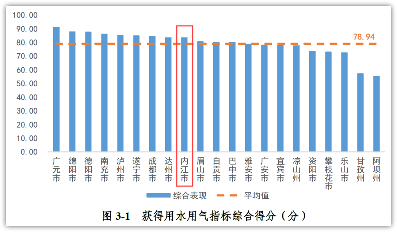 2022年度,內(nèi)江市“獲得用氣”指標(biāo)在四川省營(yíng)商環(huán)境評(píng)價(jià)中一舉從2021年的第17名(一般評(píng)價(jià)),躍升至2022年的第9名(優(yōu)秀評(píng)價(jià))。成為2022年度“獲得用氣”指標(biāo)唯一一個(gè)跨等級(jí)躍升的城市。