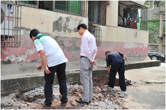 公司總經(jīng)理和搶險(xiǎn)人員在鳳窩街搶險(xiǎn)現(xiàn)場(chǎng)