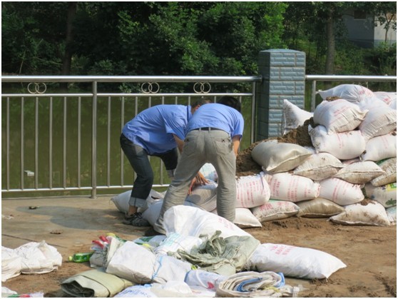 7月11日晚12時(shí)開始,內(nèi)江地區(qū)開始普降大雨,防汛形式嚴(yán)峻,總經(jīng)理王秋虎到配氣站視察水位并做出重要指示,以最快的速度增加配氣站防汛設(shè)施確保場(chǎng)站內(nèi)安全。712日早上2時(shí)開始,雨勢(shì)逐漸減弱,配氣站防汛小組值班人員每三十分鐘進(jìn)行一次水位勘察,水位上漲速度緩慢,至12日上午11時(shí),水位距堡坎保持在0.50米左右。同時(shí)公司于12日上午增置2000只沙包,進(jìn)一步確保配氣站內(nèi)安全。截止12日下午6時(shí)水位距堡坎保持在0.50米位置。