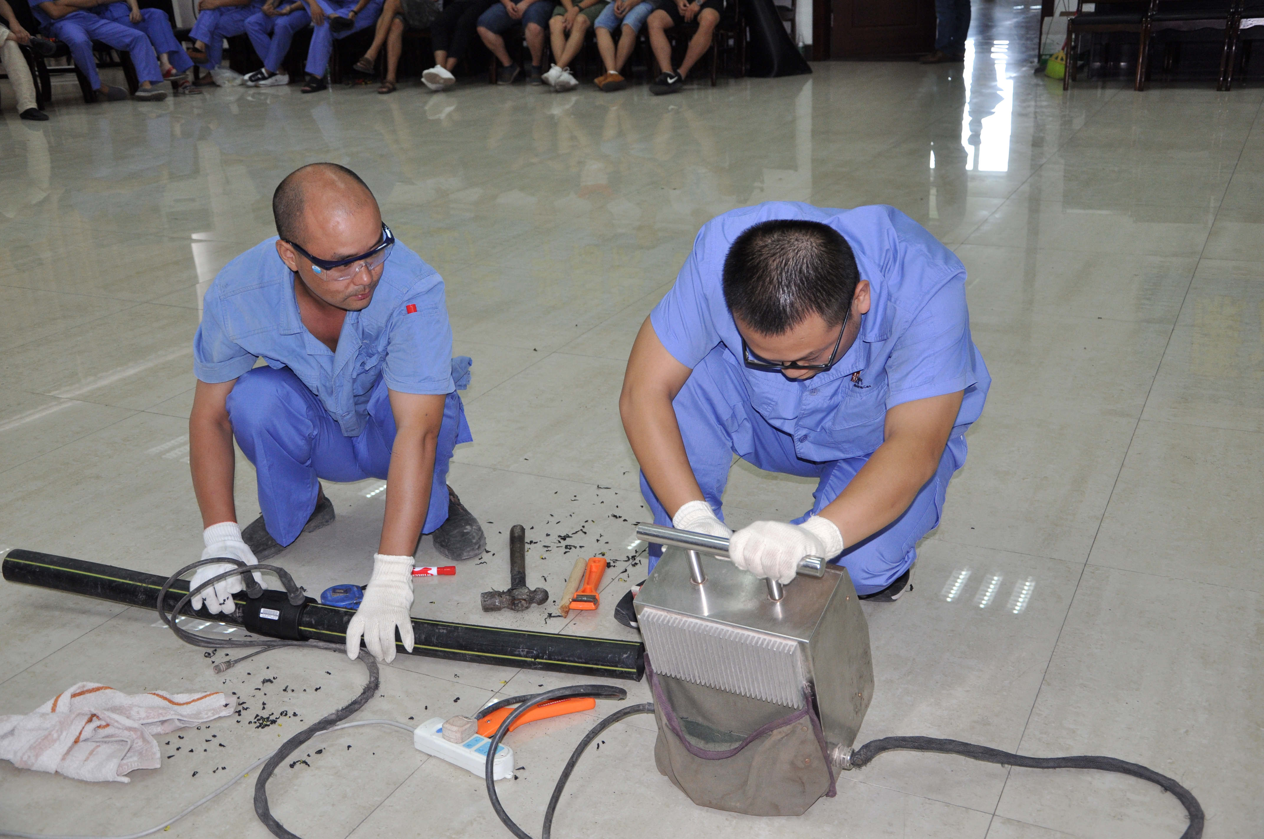 本次競賽項目包括PE管電熔焊接、調(diào)壓箱拆裝、IC卡表維修三個項目,共12名一線骨干員工參加比賽。類似于實戰(zhàn)的競賽,為廣大員工上了生動的一課,增加了對PE管、調(diào)壓箱、IC卡表等燃?xì)庠O(shè)施的了解。項目比賽結(jié)束時,各裁判逐個點評,不僅指出了參賽選手存在的缺陷不足,也指明了應(yīng)該努力的方向。