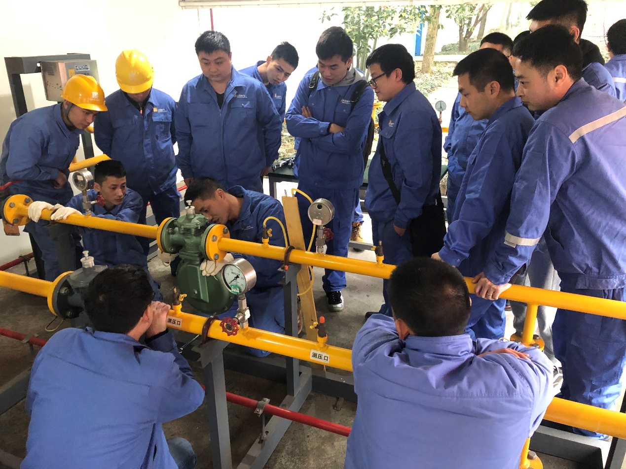 此次培訓嚴格按照運行崗位考試標準執(zhí)行,邀請了華潤燃氣一線技能達標考評員羅亞川為學員講解了調(diào)壓器的調(diào)試、維護和保養(yǎng)。各位學員親自上手調(diào)試、拆解調(diào)壓器,通過熟練調(diào)試程序,模擬調(diào)壓設施維修保養(yǎng)過程,注重對重點設備的檢查等形式,總結經(jīng)驗,查找不足,相互討論與學習加以改進。實操培訓過后,內(nèi)江公司運行管理部副經(jīng)理鄧小毅帶領各位學員學習了CJJ51《城鎮(zhèn)燃氣設施運行、維護和搶修安全技術規(guī)程》。