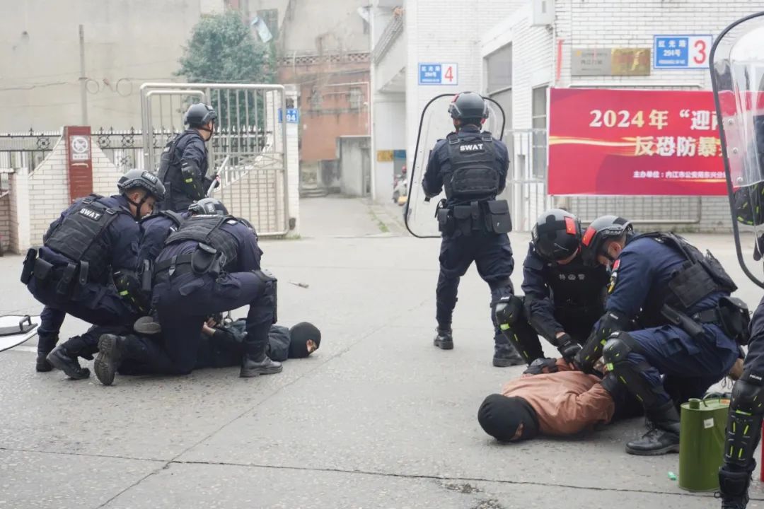 接警后,內(nèi)江市公安局東興區(qū)分局迅速指令特巡警處置組第一時間趕到現(xiàn)場進(jìn)行先期處置,警察快速使用弩對兩名暴徒進(jìn)行制服,并對暴徒進(jìn)行進(jìn)一步控制并送醫(yī)治療。