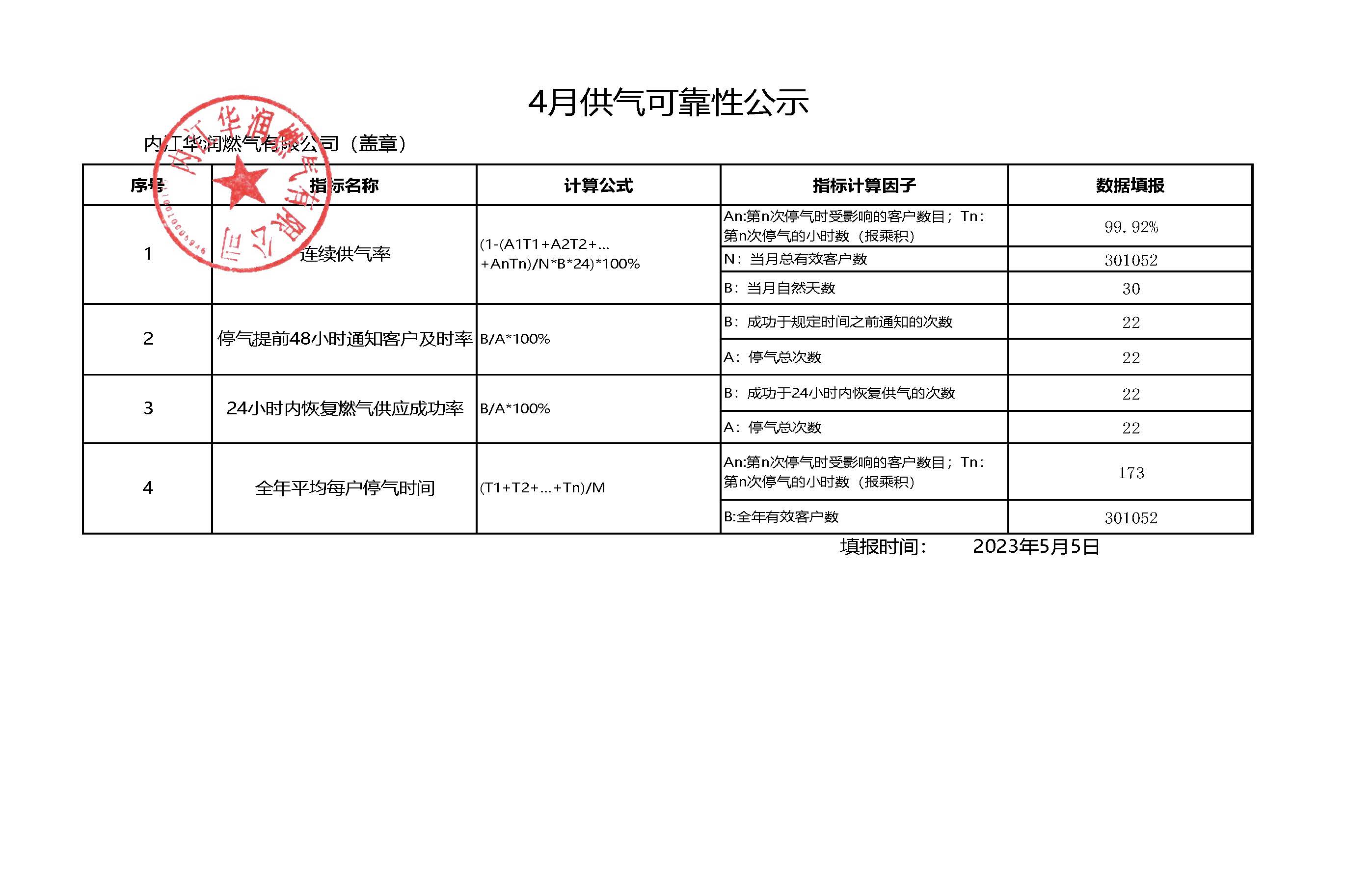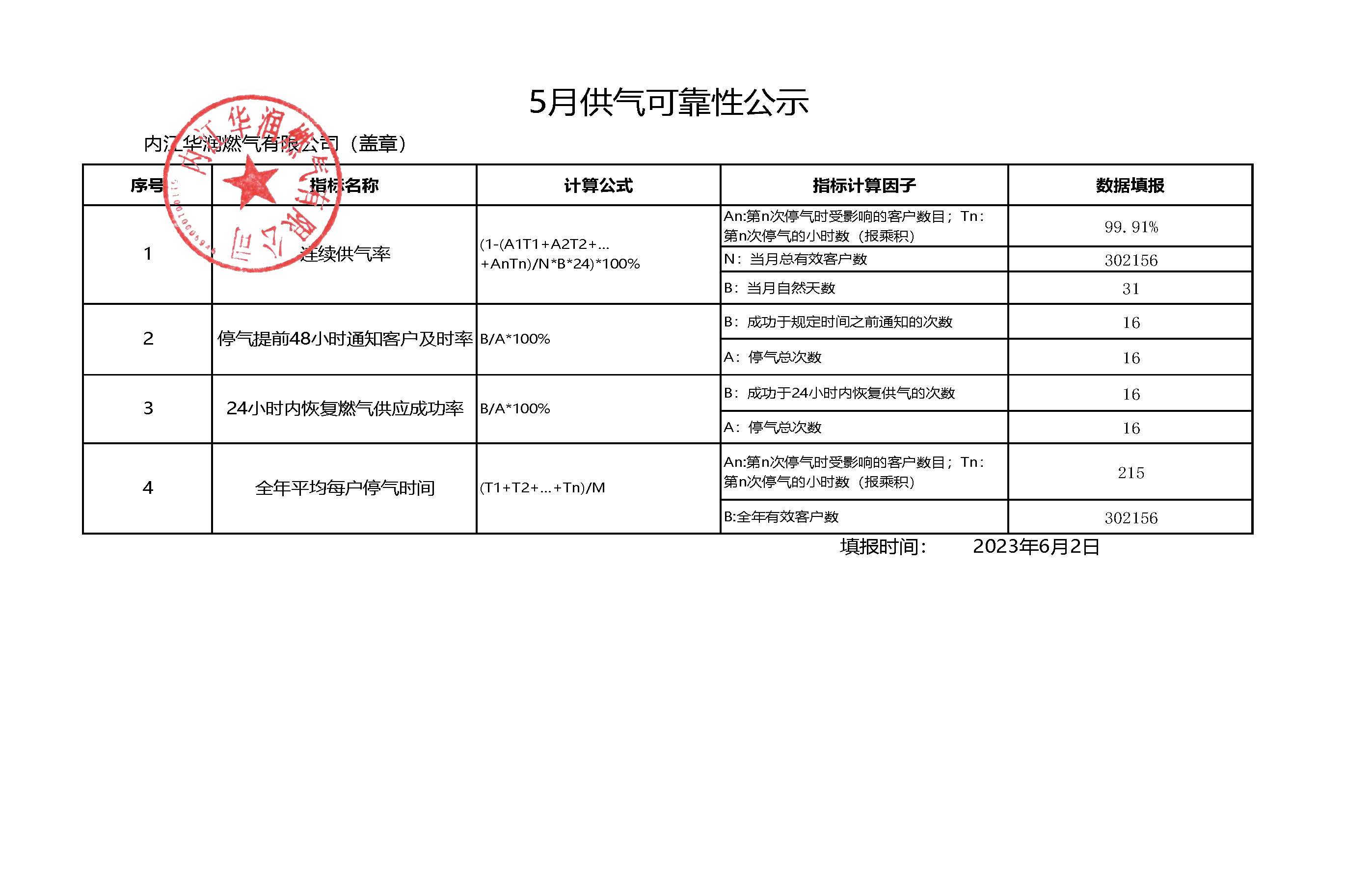 2023年二季度供氣可靠性公示