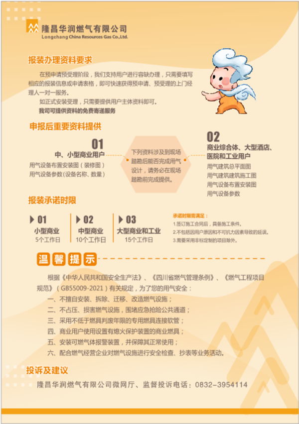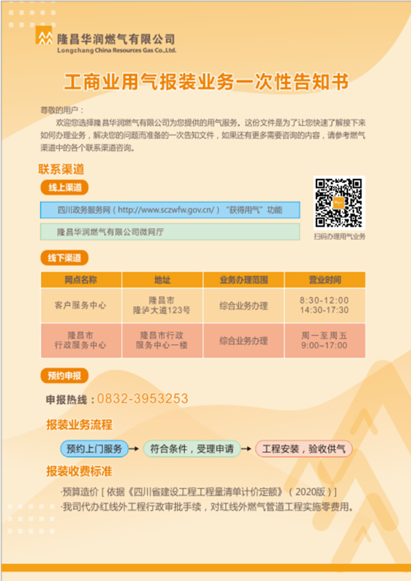 隆昌華潤燃?xì)庥邢薰竟ど虡I(yè)用氣報(bào)裝業(yè)務(wù)一次性告知書
