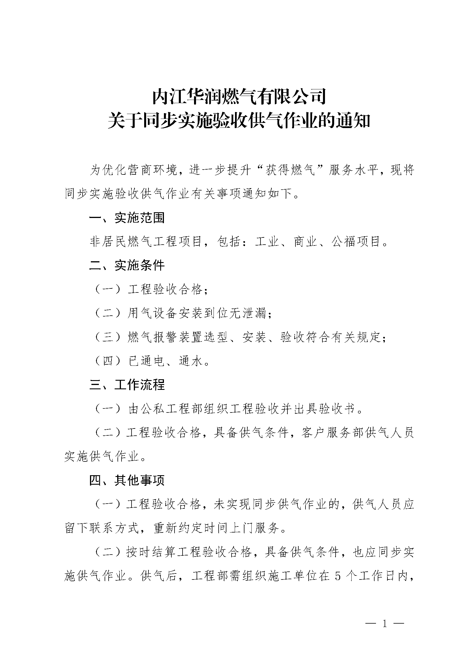 關(guān)于同步實(shí)施驗(yàn)收供氣作業(yè)的通知
